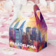 Add a modern touch to your event with this favour box featuring abstract Philadelphia skyline art. Perfect for weddings, parties, or corporate gifts.
