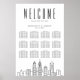 A unique city deco-themed large 12-table seating chart poster tailored specifically to your future wedding in the beautiful city of Philadelphia, Pennsylvania. All elements of this item are unlocked and customisable by using the customisation function.