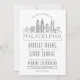 A unique wedding invitation for a marriage taking place in the beautiful city of Brotherly love Philadelphia. This invitation features a stylised illustration of the city's unique skyline with its name underneath. This is followed by your wedding day information in a matching open lined style. On the reverse side of the invitation is a deep grey colour to complement the look and feel. All individual elements of the invite card are unlocked so feel free to change or add any details necessary by using the customisation function. You can add a photo to the reverse side and add a black and white filter to it. Also, you can experiment with the many unique thicker paper types and cuts available. Matching RSVP cards, belly bands, tote bags, and more are available. Have fun being creative and making it your own!