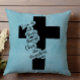 Throw pillow with the words Philippians 4:13 "I Can Do All Things through Christ who strengthens me" in black on a blue background. Matching back. Add your own message to the back or leave blank. View all of our decor in our Zazzle store!