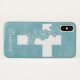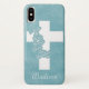 Elegant and practical iPhone case printed with a soft blue background and Philippians 4:13 I can do all things through Christ with a cross and adorned with your name.