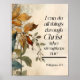 Inspirational quote scripture poster depicts a nature botanical design with beautiful fall gold, burnt orange and green leaves on a tan background. It features an encouraging Bible Verse Philippians 4:13, "I can do all things through Christ who strengthens me."