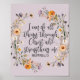 Light lavender background with Philippians 4:13 Bible Scripture, "I can do all things through Christ who strengthens me" text in a floral wreath. The wreath features flowers in yellow, purple, white, blush pink, and more. Add a name for the perfect gift for yourself or someone else!