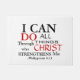 Find inspiration and empowerment in our design featuring the uplifting verse Philippians 4:13. The verse is presented in various captivating fonts, with the impactful words 'Do' and 'Christ' shining brilliantly in vibrant red. This design beautifully encapsulates the essence of strength and faith, reminding you that you can do all things through Christ who strengthens you. Use it proudly as a source of motivation and a testament to your unwavering faith. Makes a great conversation starter piece.
