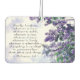 Inspirational air freshener depicts beautiful purple lilacs and features Bible Verse Philippians 4:8, "Finally, brethren, whatever is true, whatever is noble, whatever is right, whatever is pure, whatever is lovely, whatever is admirable—if anything is excellent or praiseworthy—think about such things."