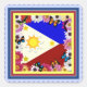 This design depicts the Philippine flag surrounded by beautiful flowers and butterflies.