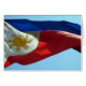 The national flag of the Philippines is a horizontal bicolor with equal bands of royal blue and scarlet red, and with a white equilateral triangle at the hoist; in the centre of the triangle is a golden yellow sun with eight primary rays, each containing three individual rays; and at each vertex of the triangle is a five-pointed golden yellow star.