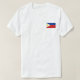 The front of this t-shirt bears a small Filipino flag with its familiar yellow motifs in a white triangle with blue and red bands to the right, while the back displays a relief map of Philippines. Available on t-shirts, sweatshirts, polos, long-sleeves and more.