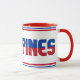 Philippines National Flag Patriotic Coffee Mug with the delightful inscription "Philippines" which is infused with the pattern and the colours from the national flag. Design is finished with the two double thin lines in complementing colours on the top and on the bottom of the cup. Colour inside the cup and on the cup handle is perfectly balanced with the rest of the colours. Here is the fantastic companion for the daily cup of coffee. Charming design, lovely colours and the unique look makes it perfect gift for any occasion. © 2022 CountriesOfTheWorld