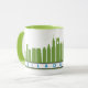 This mug features a stylised rendering of Philadelphia's ever-changing skyline, including new skyscrapers to be completed in 2019 -- in refreshing lime, grey, & blue. This design is also available in 8 other colour schemes, so mix and match with other variations to make yourself a related set of matching Philly mugs in different colours!