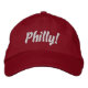 Philly! Show your love and pride in your city, Philadelphia PA! We've shown the cap in red with white thread embroidered word Philly but you can change the colours. However, red and white looks great to us Philly fans!