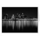 This is the beautiful skyline of the city of Philadelphia, taken at night from across the Delaware River at the Camden waterfront. The architecture of the skyscrapers and buildings of Philly are on display in this black and white photo. Centre City, the downtown area of Philadelphia, is the focus of this photograph. The lights of the city cast reflections on the water.