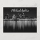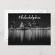 This is the beautiful skyline of the city of Philadelphia, taken at night from across the Delaware River at the Camden waterfront. The architecture of the skyscrapers and buildings of Philly are on display in this black and white photo. Centre City, the downtown area of Philadelphia, is the focus of this photograph. The lights of the city cast reflections on the water.