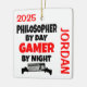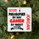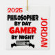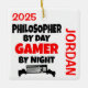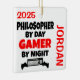 This ornament featuring the quote "Philosopher by Day Gamer by Night" is perfect for any philosopher that loves playing video games.