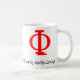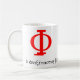 Socrates said "The unexamined life is not worth living", and that is written around the base of this mug, along with two capital Phi symbols, the first letter of the word "Philosophy" and the symbol through millenia of the philosophical struggle.