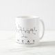 Phineas spelled out in amino acids as P H I N E A S (Proline Histidine Isoleucine Asparagine Glutamic acid Alanine Serine) on a mug for the scientist in you.