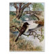 A phoebe perching on a tree branch. There's a stone bridge over a in the background of this vintage illustration from a 1920 volume on natural history.