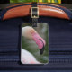 I was happy with the acrylic tag but it came with a thin leather strap to attach the tag to luggage (like a cat collar). I replaced the strap with a metal ring off of a key ring as the leather strap would come undone or break easily as luggage is sometimes handled without much care by airlines. Printing is great. Colours and positioning of the design I put on the tag were perfect. Very pleased.