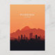 A vibrant, warm-toned flat-vector illustration of the Phoenix skyline silhouetted against a mountain range and a dramatic orange sunset backdrop.