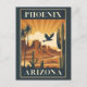 This retro-style postcard features a striking desert landscape, complete with majestic cacti, rugged rock formations, and a soaring bird, all basking in warm, golden tones that radiate a sense of sun-soaked adventure. It captures the essence of Phoenix, Arizona, with a vivid and nostalgic charm evoking the classic aesthetic of mid-century travel posters. Ideal for those who cherish the beauty of the American Southwest or enjoy collecting vintage-inspired memorabilia, this postcard serves as a delightful keepsake. It can be sent as a thoughtful note to loved ones, displayed as a decorative piece, or even gifted to fellow travel enthusiasts, inviting them to celebrate the enchanting allure of desert landscapes. Its vibrant design and timeless appeal make it a standout addition to any collection or correspondence.