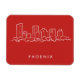 This design features a hand drawn sketch of the Phoenix skyline on a rust coloured background.