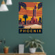 Phoenix, Arizona, View on the city from the desert. Travel poster.