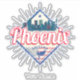Phoenix capital city in United States with skyline Vintage US souvenir for Arizona holiday. Phoenix with retro skyline in USA as a souvenir for Maricopa County and America. Phoenix lifestyle for urban backpackers and American city trips.