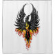 Tribal art black ink firebird / phoenix with coloured flames in a backdrop of white