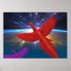 Mythical phoenix birds flying high - so high they soar into space. Original digital art by Yuichi Tanabe.