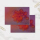 A repeated fractal pattern like the flaming feathers of the mythical firebird. Swirls of vivid orange, purple, and gold against a muted lavender and pale orange and pink backdrop.
