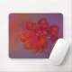 A repeated fractal pattern like the flaming feathers of the mythical firebird. Swirls of vivid orange, purple, and gold against a muted lavender and pale orange and pink backdrop.