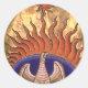 Legendary phoenix bird surrounded by burning flames and flying up out of a crucible of ashes to the stars above. In mythology, the phoenix bird lived for 1400 years before regenerating and so became a symbol of rebirth and the cycles of life where the new generation is borne from all that came before.