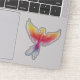 A phoenix bird rising in gradient colour spectrum with flame colours to represent the mythological fantasy phoenix rising from the flames with wings spread to begin a new life.