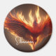 Phoenix Rising Inspiring Strength and Encouragement Round Magnet with Personalised Name. Makes a great gift for someone who need some support or has been going through a rough time as the phoenix rising from the ashes is a very inspirational design. Let them know to never give up hope and that they are a survivor destined to rise again. Helpful for someone going through cancer or divorce.