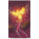 A tablecloth featuring a phoenix rising on a purple background.