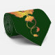 The Phoenix has long been presented as a symbol of rebirth, immortality, and renewal. This design shows five diminishing sized golden orange phoenix arrayed vertically along the face of the tie on a dark green background.