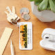 Rectangular aluminium keychain features Phoenix, Arizona city skyline silhouette with sunset watercolor splash background and latitude & longitude map coordinates.