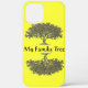 Genealogy. Personalise with your family name between two reflected oak trees that represent your family tree. Customise/Edit to change background colour (defaults to yellow).