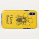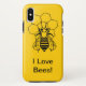 Bee sitting on cells of honeycomb. Text reads "I Love Bees!"
