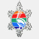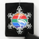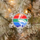 Snowflake Ornament with a design with the flag of St. Petersburg, Florida. A flag with orange, red, green, blue, and navy blue stripes with a symbol of white pelican