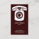 A clear stylish and attractive business card template with a bold 3d effect retro wall phone motif in white. Main company details on the front, with name and personal contact on the back.