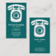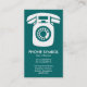 A clear stylish and attractive business card template with a bold 3d effect retro wall phone motif in white. Main company details on the front, with name and personal contact on the back.