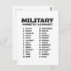 Learn all the military phonetic alphabet words from Alpha to Zulu with this bold, easy-to-read chart designed for clarity and impact. Each word corresponds to a letter in the NATO phonetic alphabet, used globally by military forces, pilots, radio operators, and emergency responders.