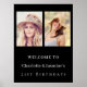 A photo welcome poster for 2 persons, friends, sisters, twins. A classic black background, white text. Personalise and add 2 photos, names and date(s)