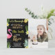 Photo 3rd Black Glitter Flamingo Pineapple Invitations
