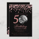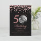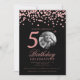 Photo 50th Birthday Rose Gold Confetti Black Invitation