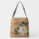 Unique Photo Gifts. Personalised Cross Body Bags for Her. Type in YOUR TEXT and Click "Change" to Upload YOUR PHOTO or Delete. Faux Wood design with a pretty corner faux Vintage Magnolia. The cross body design has a longer strap to cross over your shoulder or choose the regular photo personalised tote bag in Medium or Large personalised bags.