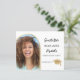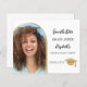 On front: Add your own vertical size photo of the graduate. A faux gold photo arch frame. A chic white background, black text. Templates for a name and date. The name and the text: Save the Date are written with a modern hand lettered style script. With a cap, tassel topper.