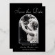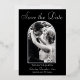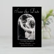 For this save the date, the couple's photo is surrounded by a real foil arch frame. Choose from gold, silver, or rose gold for the foil. The couple's names, wedding date and location sit below the frame.. The back of the card is black.