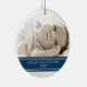 Baby's first christmas ornament customisable with your own family photo in elegant dark navy blue and white. A stylish christmas gift for mum this holiday season.